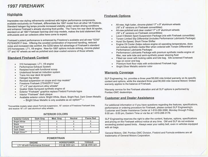Top : Firehawk : Literature : 1997 Firehawk Literature :